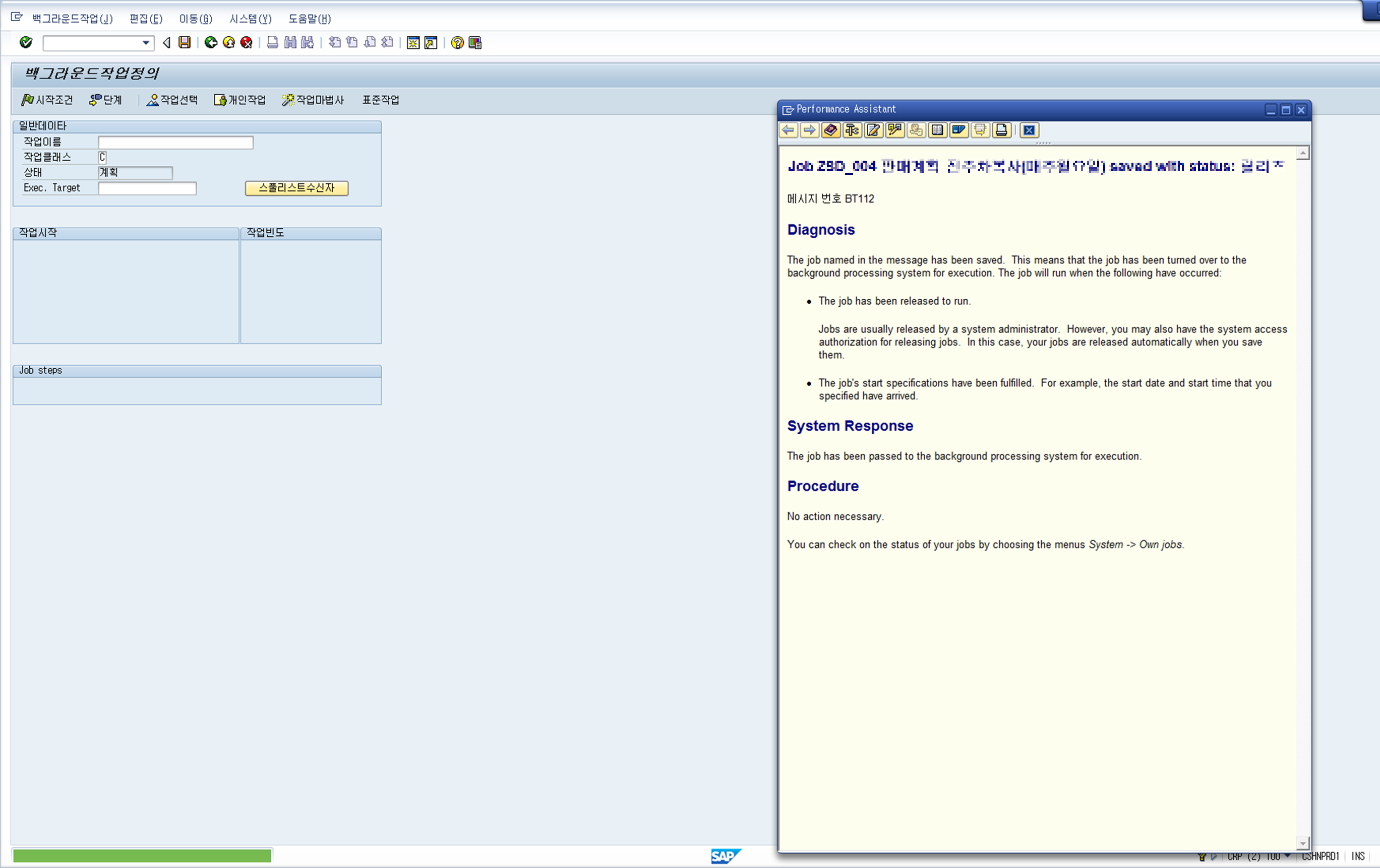 배치 프로그램을 등록해야 할 경우가 많이 발생한다. 지각자 알림 메일 등 배치 프로그램은 SM36 등록 가능하며 배치가 제대로 돌았는지 확인은 SM37에서 확인하면 된다.